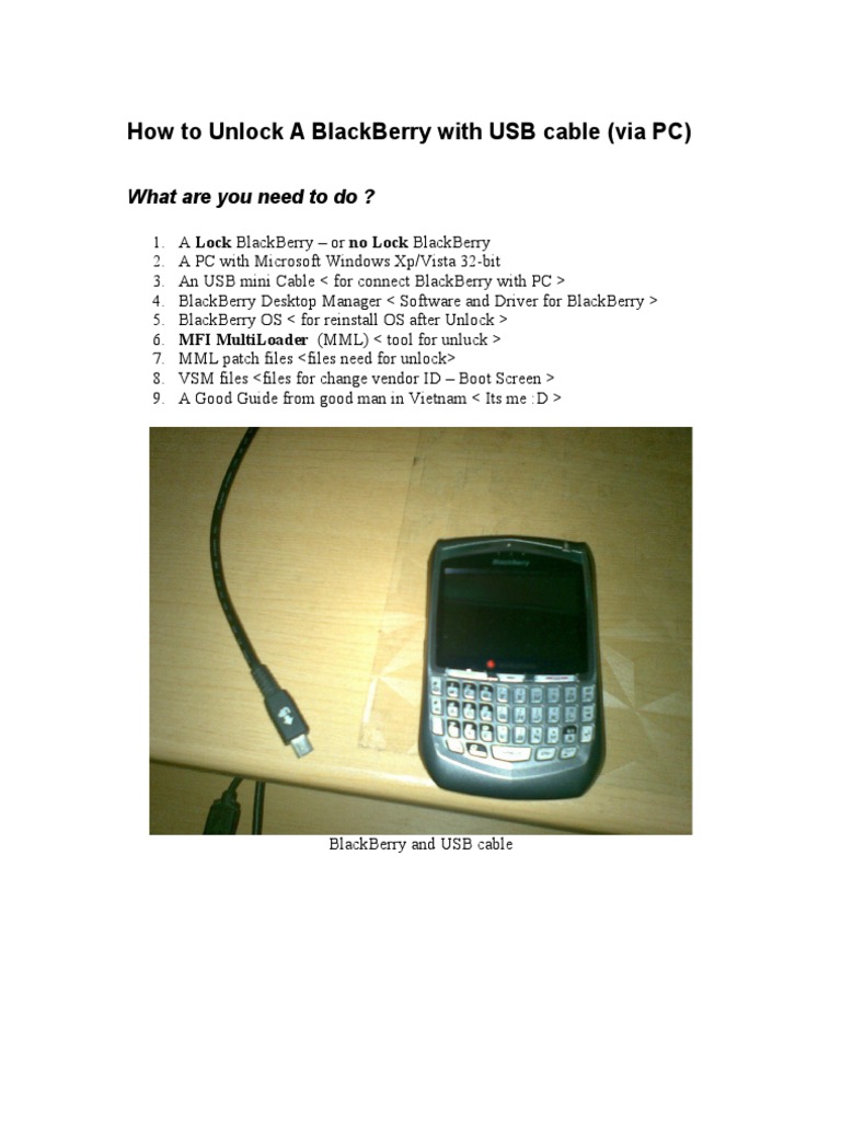 How To Unlock A Blackberry With Usb Cable Via Pc Pdf Free Download from docplayer.net Click connect and then plug usb cable to phone without battery (if you already have bb license file). Wait for it to load. Activate a hidden menu by typing mepd. Turn on your blackberry without a sim card inserted. There are two ways of generating an unlock code for blackberry: Disconnect blackberry form pc, close mfi multiloader, check. If you have problem with connect you should click disconnect. Apr 24, 2019 · follow the steps below to network unlock your blackberry: